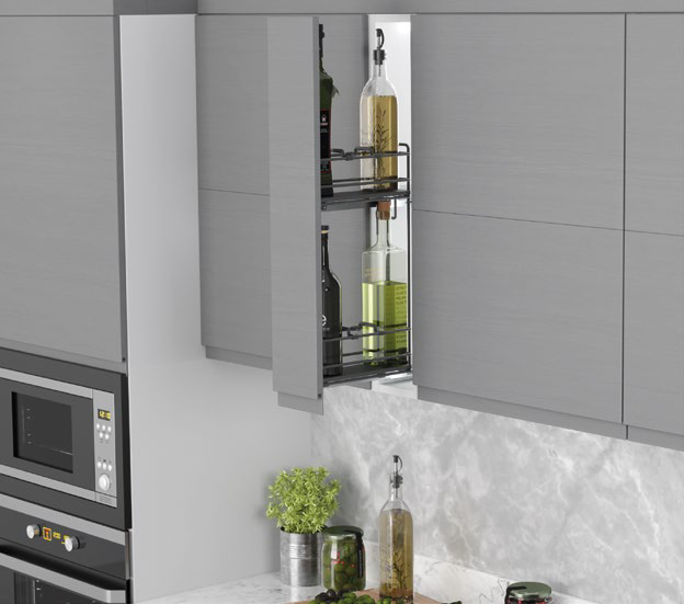 Starax S-2910-A Cargo Mini 15 do płytkich szafek Prawe z pełnym dnem w kolorze antracyt to kompaktowe i funkcjonalne rozwiązanie do mniejszych szafek kuchennych. Wysuwany system cargo zapewnia wygodny dostęp do produktów, maksymalnie wykorzystując przestrzeń szafki. Pełne dno w eleganckim odcieniu antracyt oraz solidne wykonanie gwarantują trwałość i nowoczesny wygląd. Ergonomia, praktyczność i niezawodna jakość marki Starax w jednym produkcie.