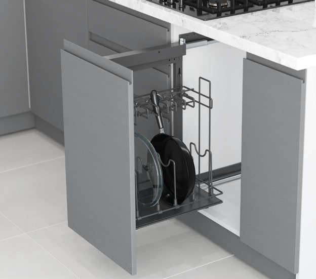 Starax S-2880-A Cargo 45 Chrom na Patelnie/Pokrywki Prawe z wykończeniem w kolorze antracyt to nowoczesne i funkcjonalne rozwiązanie do szafek kuchennych. System cargo został zaprojektowany specjalnie do przechowywania patelni i pokrywek, zapewniając wygodny dostęp i maksymalne wykorzystanie przestrzeni. Chromowane elementy w połączeniu z eleganckim odcieniem antracyt gwarantują trwałość i stylowy wygląd. Ergonomia, praktyczność i niezawodna jakość marki Starax.