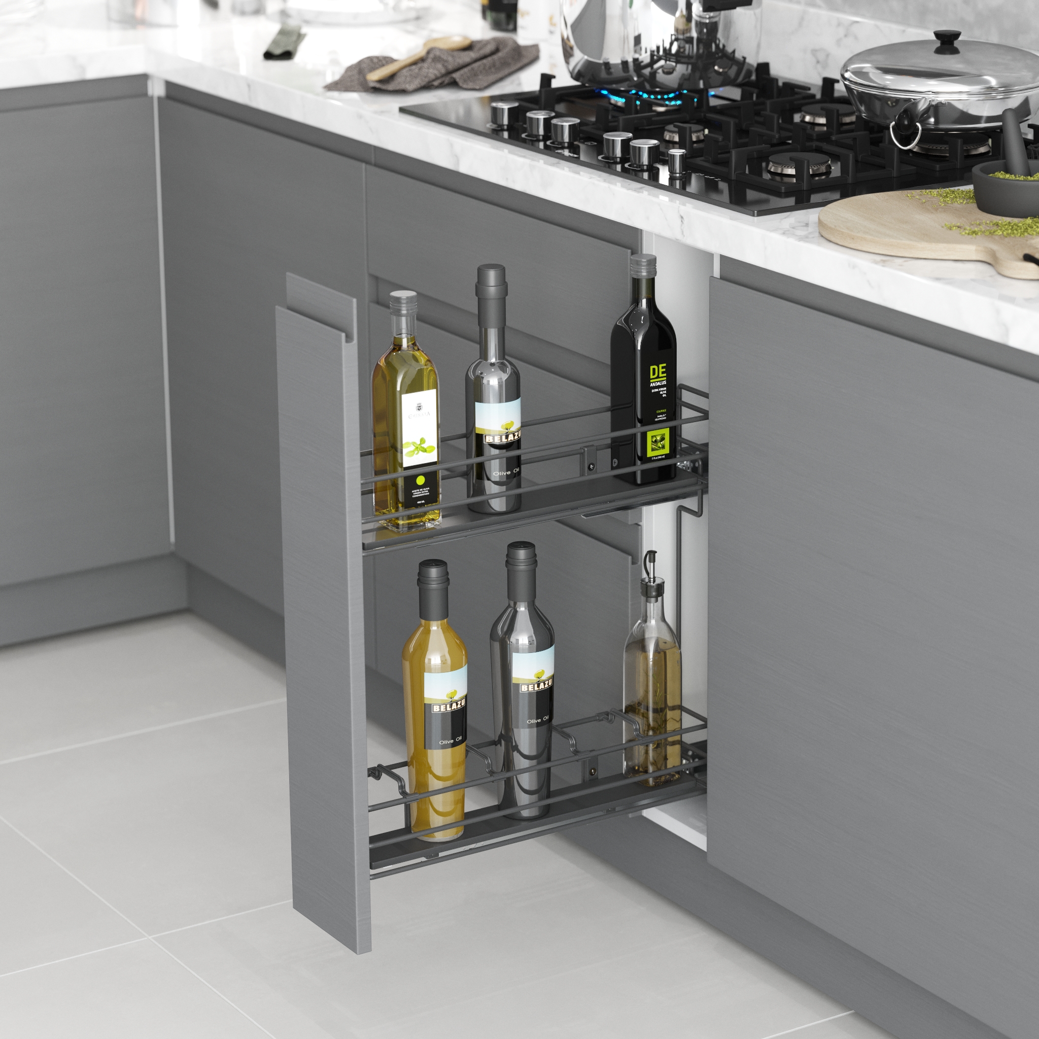 CARGO boczne 15 II antracyt pełne dno BL pełny wysuw lewe to nowoczesny, funkcjonalny system przechowywania, stworzony z myślą o maksymalnym wykorzystaniu bocznej przestrzeni w szafkach kuchennych o szerokości 150 mm. Produkt łączy w sobie solidną konstrukcję, wysoką jakość materiałów oraz nowoczesny design, gwarantując wygodę, trwałość i porządek w codziennym użytkowaniu. Dzięki przemyślanym rozwiązaniom technologicznym system CARGO 15 II umożliwia ergonomiczne zorganizowanie przestrzeni kuchennej oraz łatwy dostęp do wszystkich przechowywanych produktów, nawet w najmniejszych szafkach bocznych.