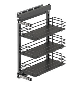 Starax S-2243-A Cargo 25 III-poziomowy z pełnym dnem antracyt, pełny wysuw, domyk lewy to funkcjonalny system do organizacji kuchni, który maksymalnie wykorzystuje przestrzeń szafki. Trzy poziomy umożliwiają wygodne przechowywanie różnych produktów, a pełne dno gwarantuje stabilność i łatwe utrzymanie w czystości. Mechanizm pełnego wysuwu z funkcją domyku zapewnia cichy i komfortowy dostęp. Stylowy antracytowy kolor nadaje nowoczesny charakter wnętrzu, a konstrukcja lewa ułatwia montaż w wybranej szafce.