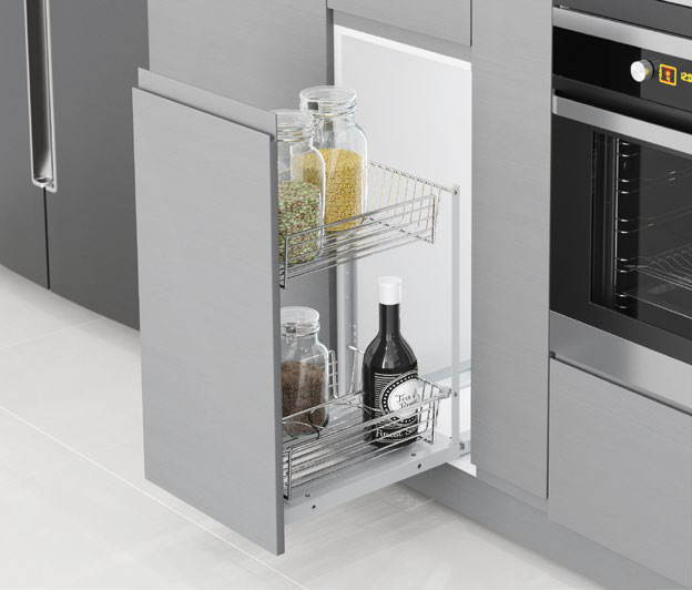 Starax S-2175-C Cargo chrom 55 dwupoziomowe to funkcjonalny system do organizacji kuchni, który pozwala maksymalnie wykorzystać przestrzeń szafki. Dwa poziomy ułatwiają przechowywanie różnorodnych produktów, a solidna, chromowana konstrukcja zapewnia trwałość i stabilność. Mechanizm wysuwu gwarantuje wygodny dostęp do zawartości, a nowoczesny, chromowany design estetycznie komponuje się z każdym wnętrzem kuchennym, łącząc praktyczność z elegancją.