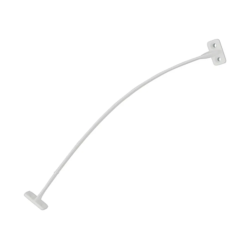 Ogranicznik kąta otwarcia HAFELE 366.73.702 w kolorze białym. Produkt ten ogranicza otwarcie frontu meblowego, lekkich klap zmniejszając ich zakres otwarcia. Znakomicie sprawdzi się w przypadku zabudowy meblowej umieszczonej prostopadle, gdzie podczas otwierania drzwi szafki uderzają o inny front. Ogranicznik posiada długość 20 cm i jest mocowany na wkręty do panelu bocznego.