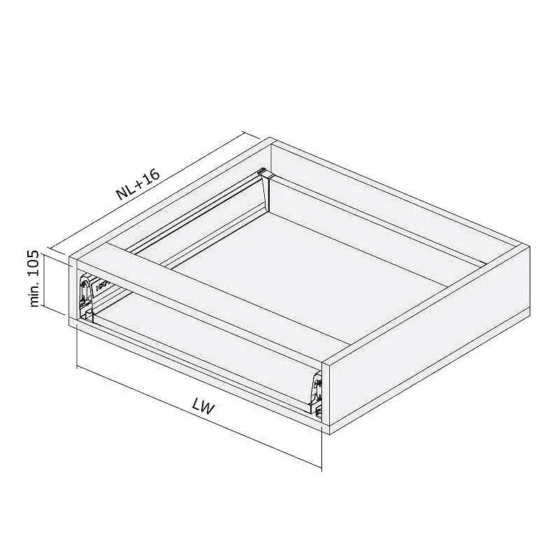 Szuflada Matrix S35 to ergonomiczne rozwiązanie, które pasuje do każdego wnętrza, zarówno kuchni, garderoby, jak i do mebli wolnostojących. Sprawdzi się w frontach wpuszczanych, jak i nakładanych. Wyposażona jest w niezawodną prowadnicę, która zapewnia pełny wysuw, a mechanizm cichego domyku gwarantuje cichą pracę i delikatne zamykanie szuflady. Montaż jest łatwy dzięki komfortowej regulacji od wewnętrznej strony. Konstrukcja szuflady pozwala na umieszczenie w niej aż do 35 kg różnych produktów.
