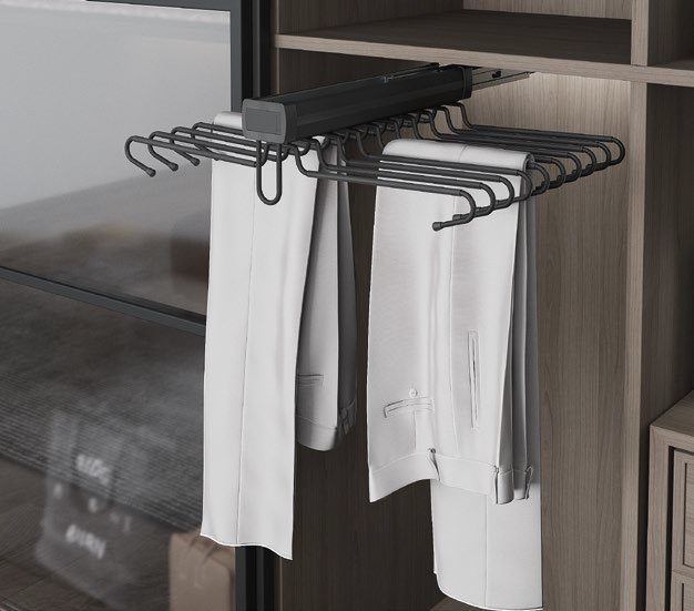 Wieszak podwójny na spodnie Starax S-6723-A to praktyczne rozwiązanie do szaf i garderób, które ułatwia organizację odzieży. Dzięki dwóm poziomom zawieszenia, umożliwia przechowywanie kilku par spodni w sposób estetyczny i bez zagnieceń. Wykonany z trwałych materiałów w eleganckim kolorze antracytowym, doskonale komponuje się z nowoczesnymi wnętrzami. To idealny wybór dla osób ceniących funkcjonalność, porządek i styl.