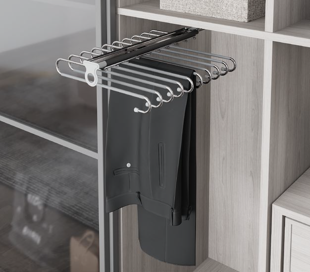 Wieszak na spodnie S-6545-G w wykończeniu chrom to praktyczne i eleganckie rozwiązanie do garderoby lub szafy. Umożliwia wygodne i schludne przechowywanie spodni, utrzymując je w idealnym porządku. Solidna i trwała konstrukcja zapewnia stabilność, a nowoczesny chromowany design sprawia, że wieszak estetycznie komponuje się w każdej przestrzeni, łącząc funkcjonalność z elegancją.