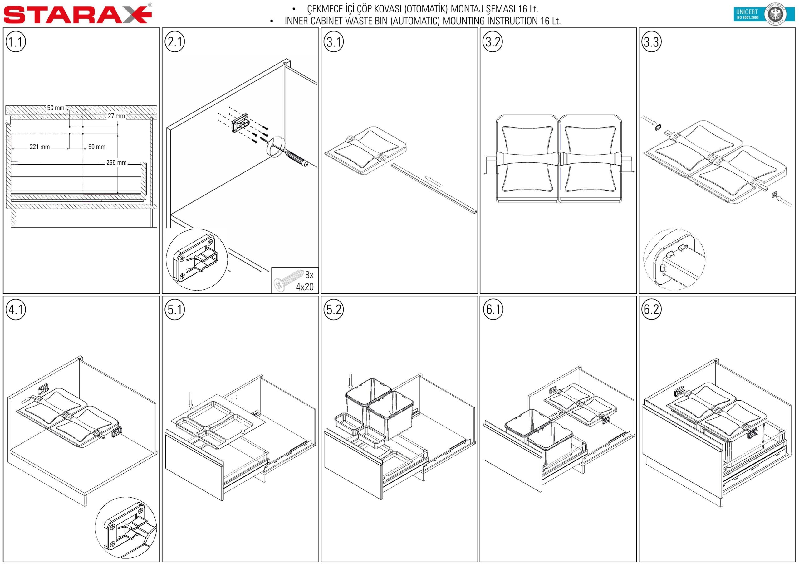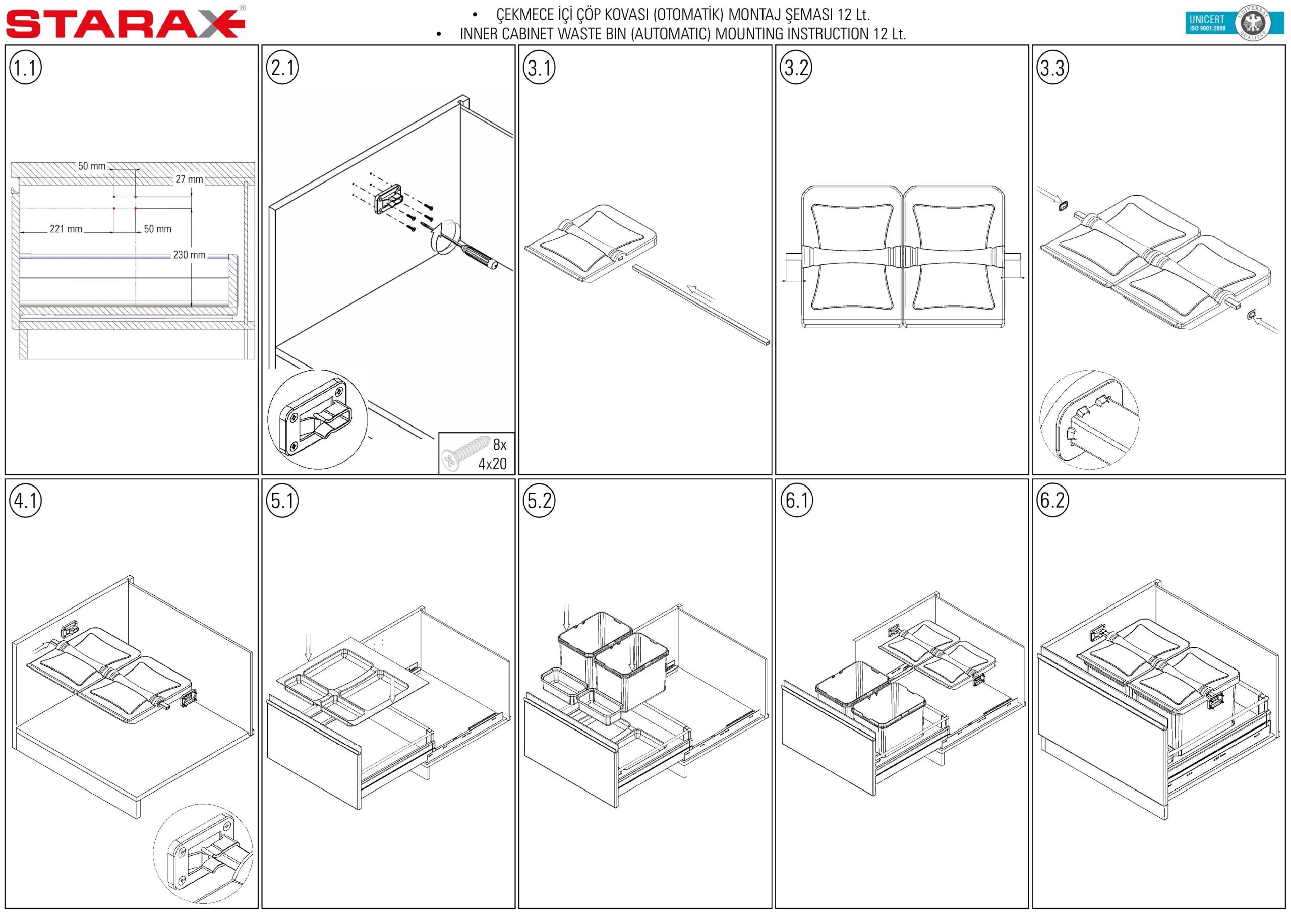WKŁAD DO SZUFLADY Z KOSZAMI NA ŚMIECI 90CM AUTOMATIC