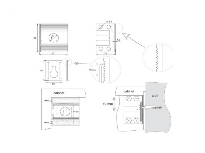 Zawieszka meblowa – doskonałe rozwiązanie do szybkiego i stabilnego montażu szafek np: kuchennych Element montażowy stalowy, nakładka tworzywowa